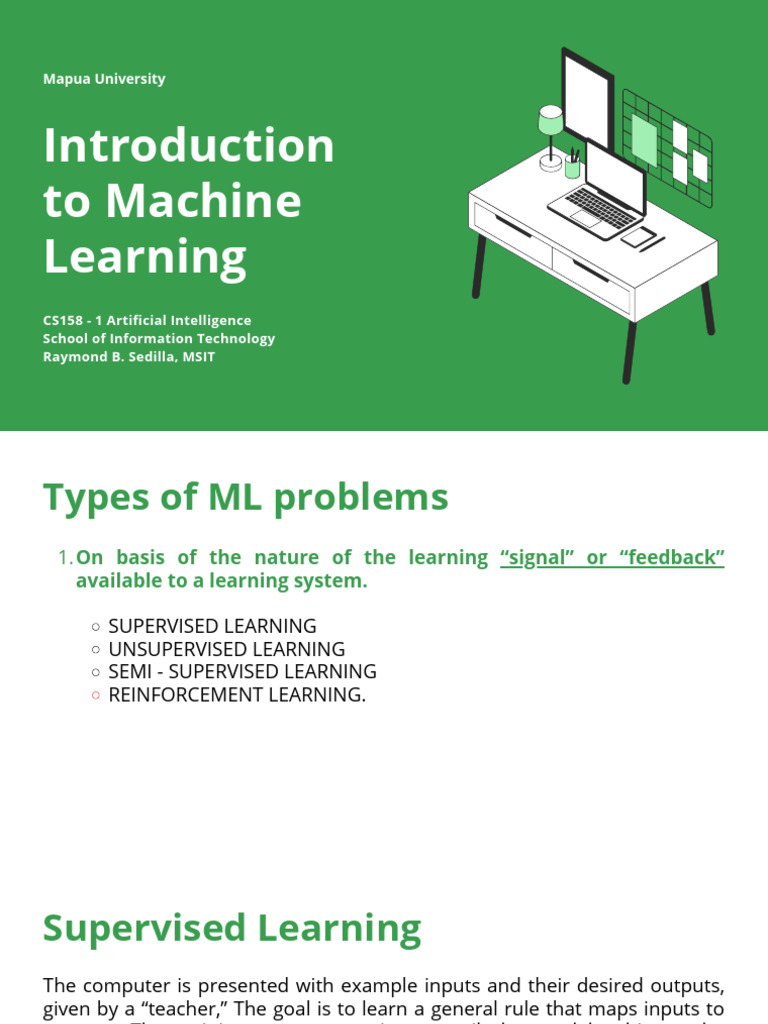 given by a “teacher,” The goal is to learn a general rule that maps inputs to