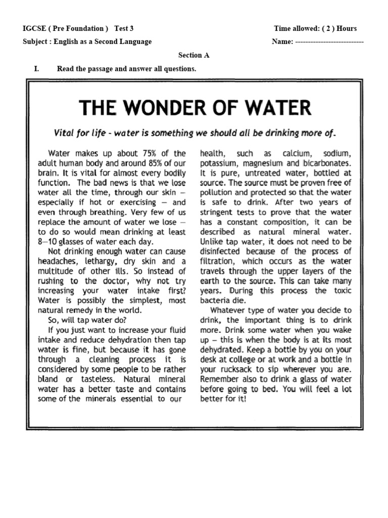 IGCSE ( Pre Foundation ) Test 3 Time allowed: ( 2 ) Hours