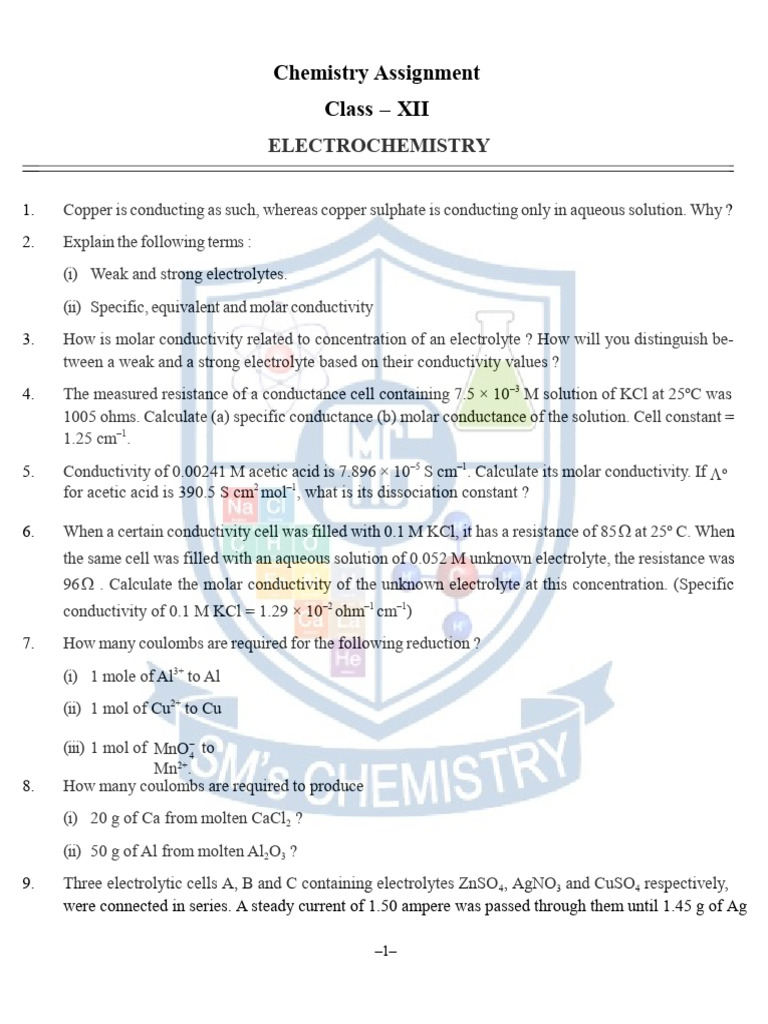 30. Electrolytic conductivity of 0.2 mol L–1 solution of KCl at 298 K is 2.48 × 10–2 –1 cm–1.