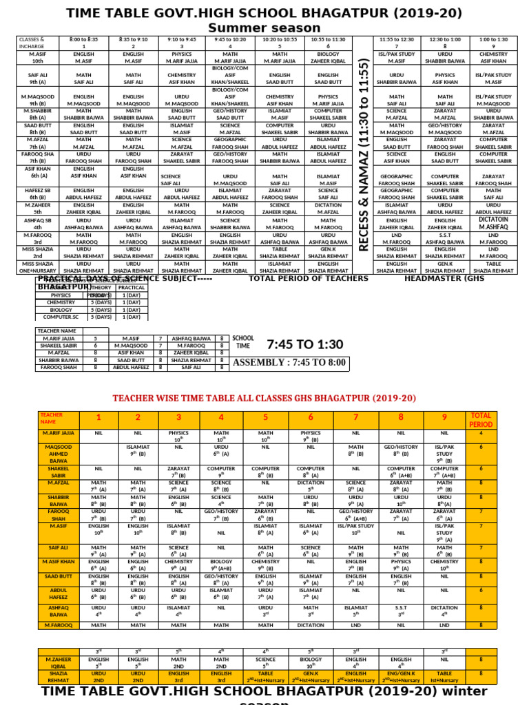 TEACHER WISE TIME TABLE ALL CLASSES GHS BHAGATPUR (2025-2026)