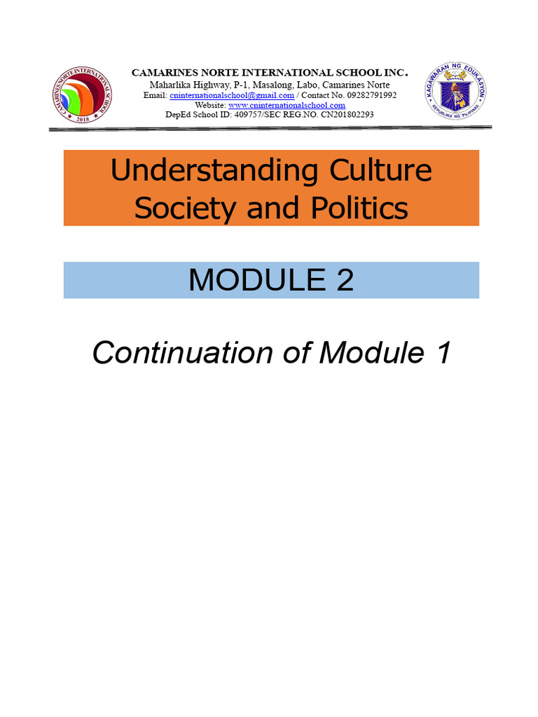 Baleña, Ederlinda D. et.al. ((2016). Understanding Culture, Society and Politics for