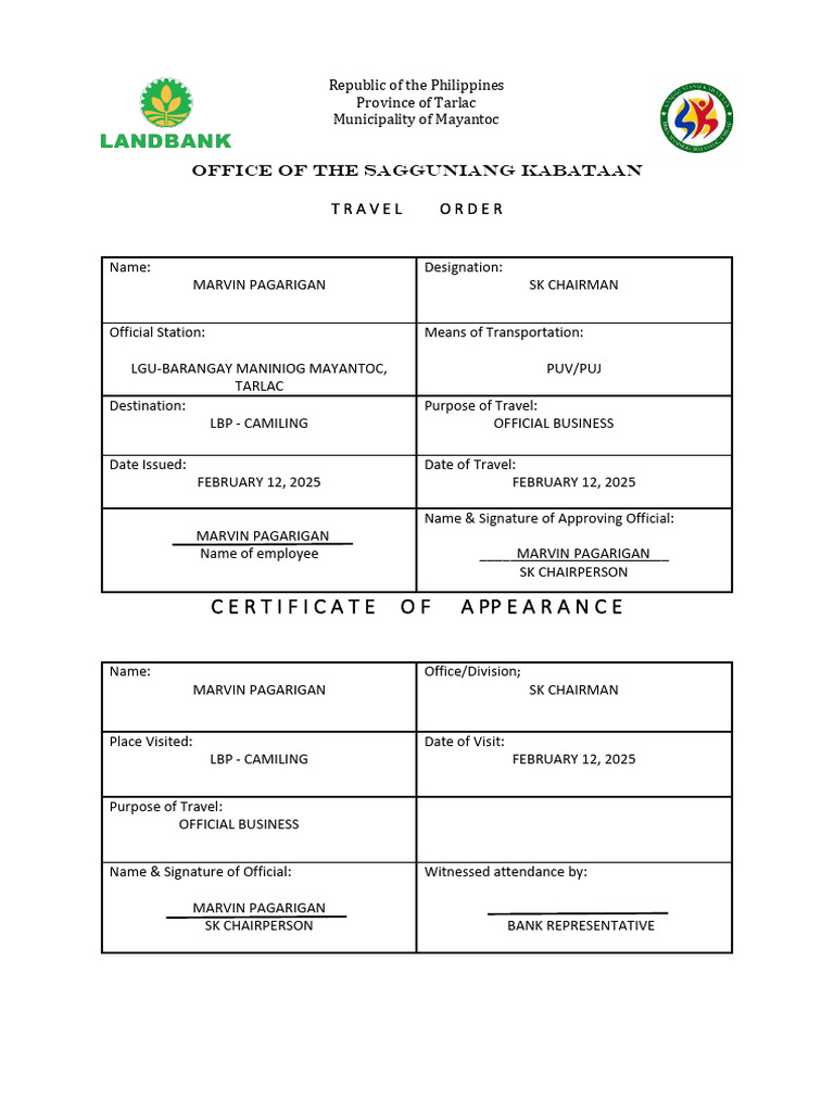 LGU-BARANGAY MANINIOG MAYANTOC, PUV/PUJ