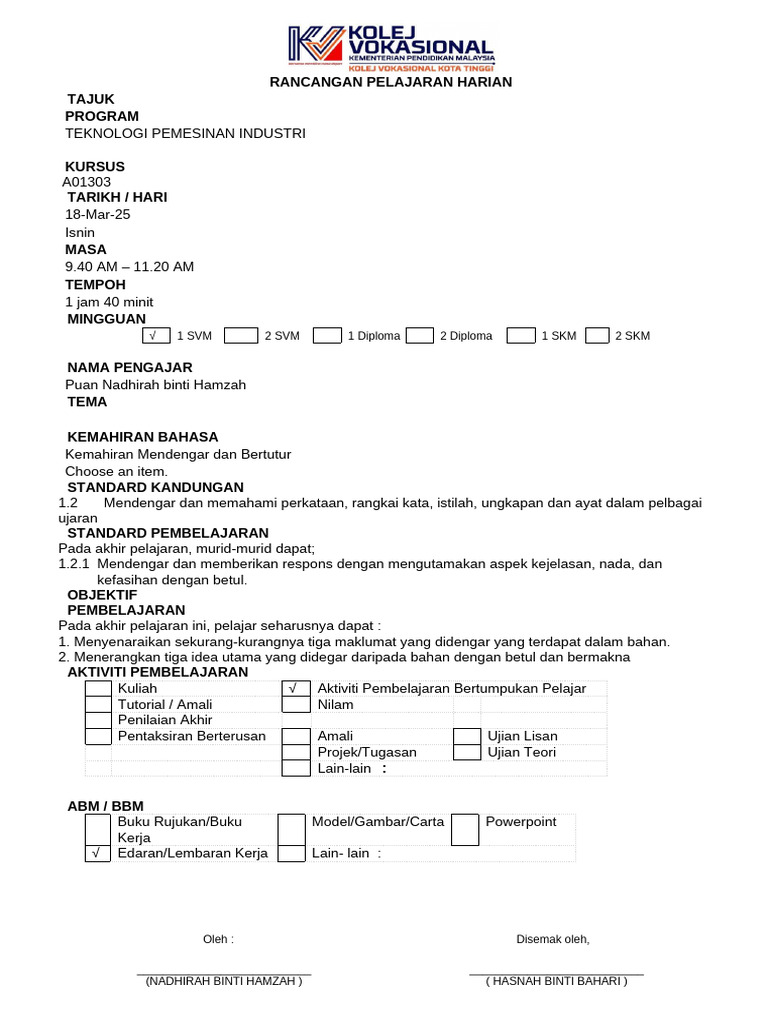 RANCANGAN PELAJARAN HARIAN