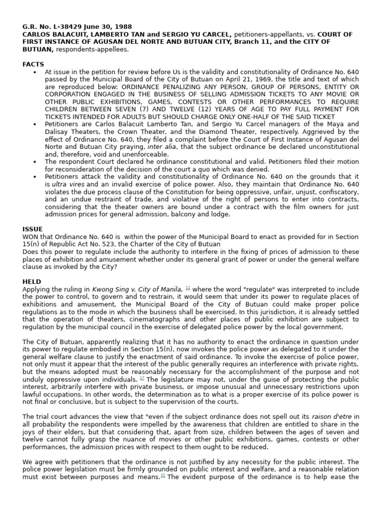 The respondent Court declared he ordinance constitutional and valid. Petitioners filed their motion