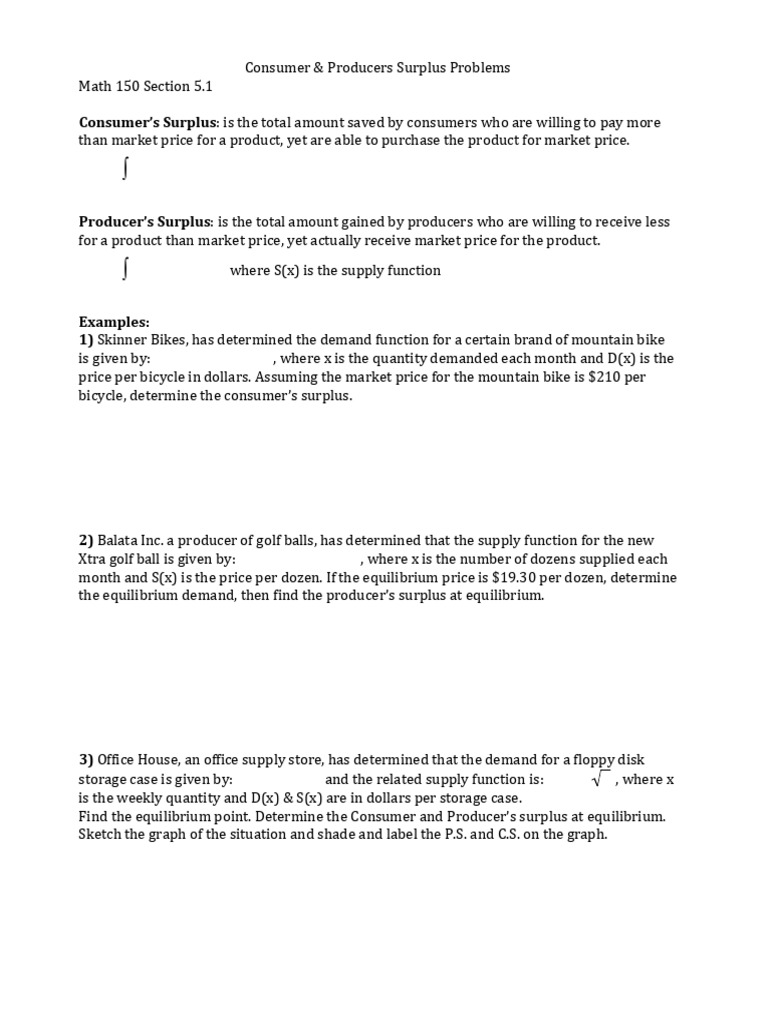 Consumer & Producers Surplus Problems