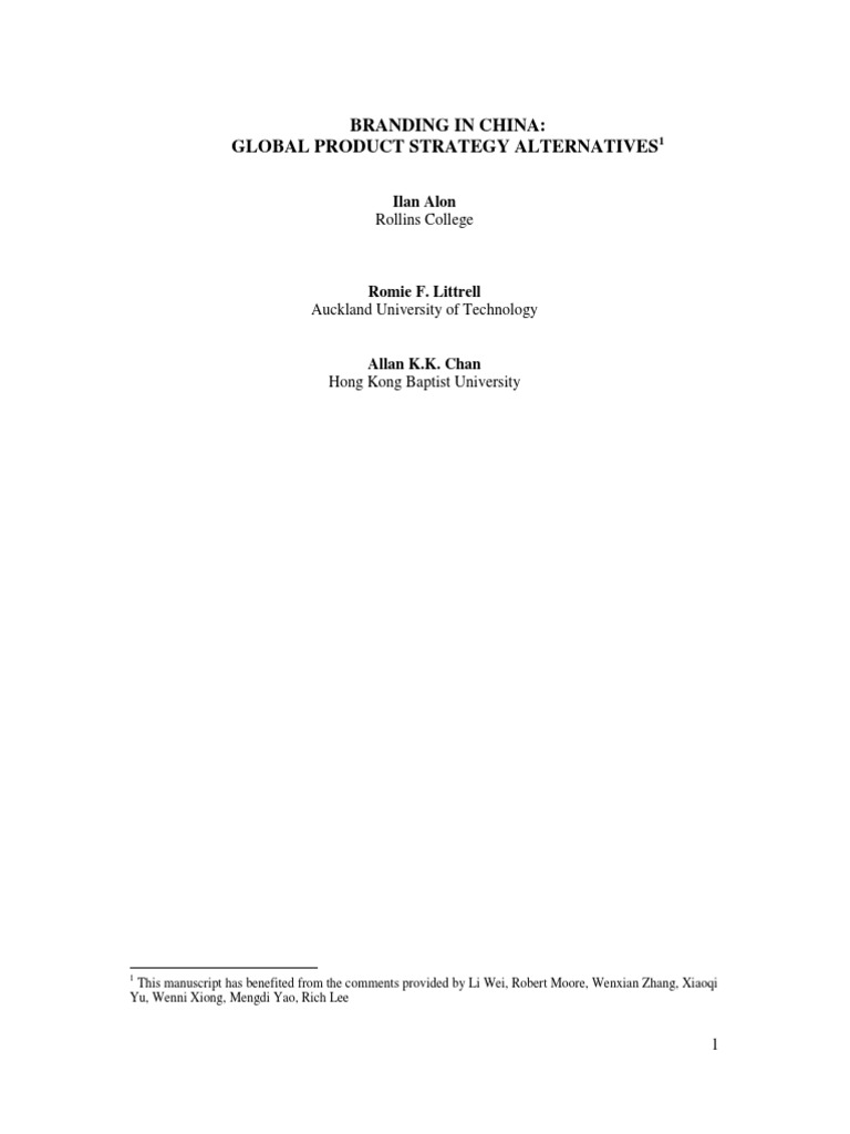 REFERENCES Alon, I., Ed. (2003). Chinese economic transition and international marketing strategy. Westport, Connecticut: Praeger Publishers. Ashton Brand Group (1999) Branding In Asia-Pacific, Vol IX (Winter): http://www.ashtonbg.com/brandreports/brand_in_asiapacific.html (retrieved Dec 17, 2007). Chan, A. K. K., & Huang, Y. Y. (1997). Chinese brand naming: From general principles to specific rules. International Journal of Advertising, 16(4), 320-335. Chan, A. K. K., & Huang, Y. Y. (2001a). Principles of brand naming in Chinese: The case of drinks. Marketing Intelligence & Planning, 19(5), 309-318. Chan, A.K.K., & Huang, Y.Y. (2001b). Chinese brand naming: A linguistic analysis of the names of ten product categories. Journal of Product and Brand Management, 10(2), 103-119. De Mooij, M. K. (1998). Global marketing and advertising: Understanding cultural pParadoxes. Thousand Oaks, CA: Sage Publications.. Francis, J. N. P., Lam, J. P. Y., &,Walls, J. (2002). Executive insight: The impact of linguistic differences on international brand name standardization: A comparison of English and Chinese brand names of Fortune-500 companies. Journal of International Marketing, 10(1), 98 116. Hall, E. T. (1976). Beyond Culture. Garden City, NY: Doubleday. Klink, R. R. (2000). Creating Brand Names with Meaning: The Use of Sound Symbolism, Marketing Letters, 11 (1), 5-20.. Lee, R. (2006), Globalization, Language, and Culture. Philadelphia: Chelsea House Publishers.