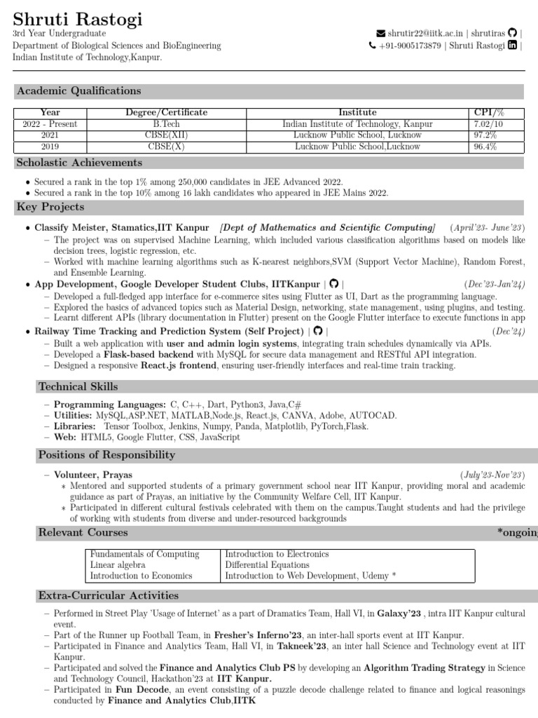 3rd Year Undergraduate shrutir22@iitk.ac.in | shrutiras |