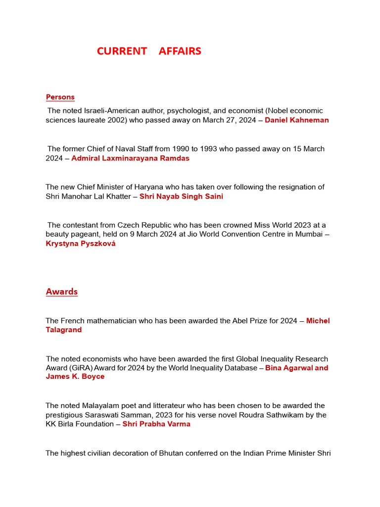 IMPORTANT CURRENT AFFAIRS QUESTIONS
