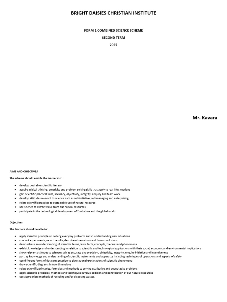 FORM 1 COMBINED SCIENCE SCHEME