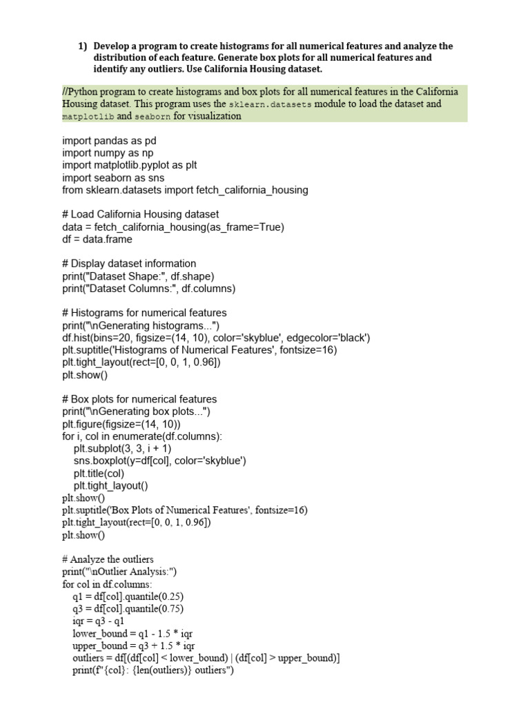 Housing dataset. This program uses the sklearn.datasets module to load the dataset and