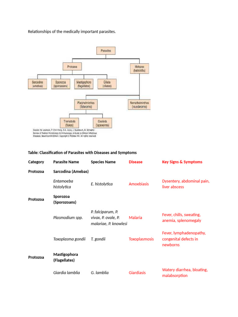 Category Parasite Name Species Name Disease Key Signs & Symptoms