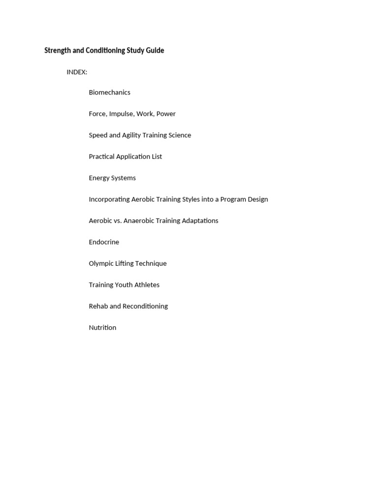 Strength and Conditioning Study Guide