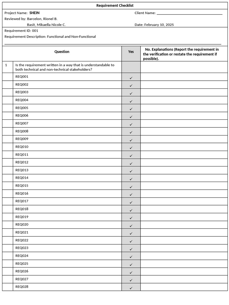 Requirement Checklist