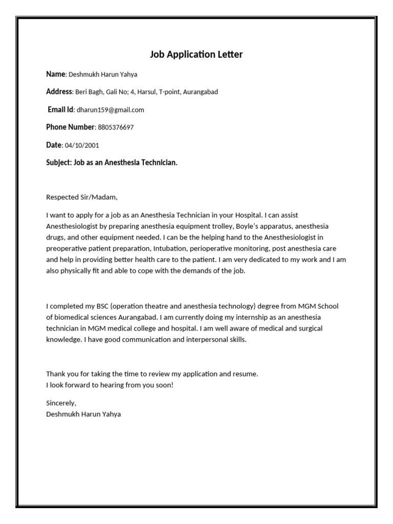 I want to apply for a job as an Anesthesia Technician in your Hospital. I can assist