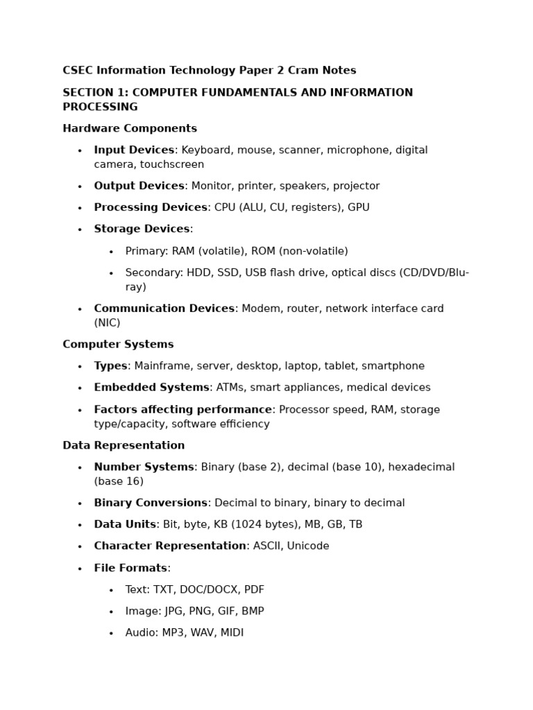 CSEC Information Technology Paper 2 Cram Notes