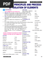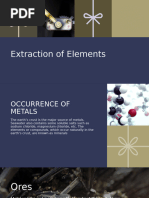 The document outlines the basic principles of metal extraction, emphasizing the need to extract metals from ores due to their occurrence in various forms. It describes the processes of metallurgy, including ore concentration, reduction to crude metal, and refining, along with methods such as froth flotation and chemical separation. Additionally, it discusses the types of ores and the specific methods suitable for extracting different metals based on their chemical properties and reactivity.