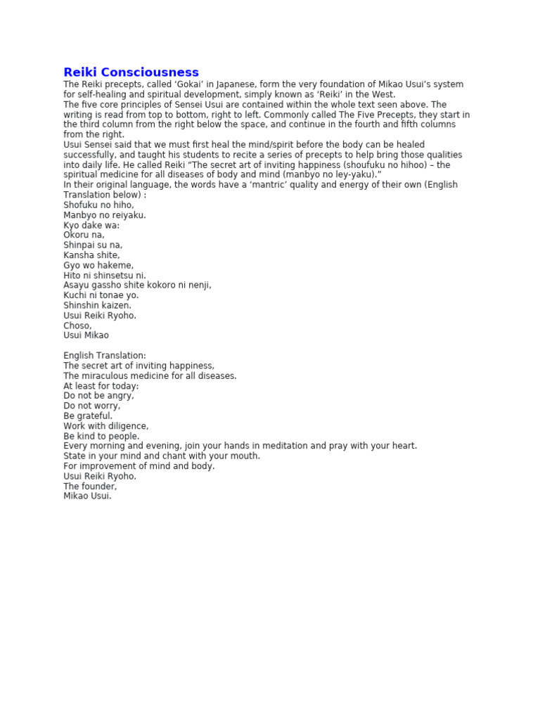 The Reiki precepts, called ‘Gokai’ in Japanese, form the very foundation of Mikao Usui’s system