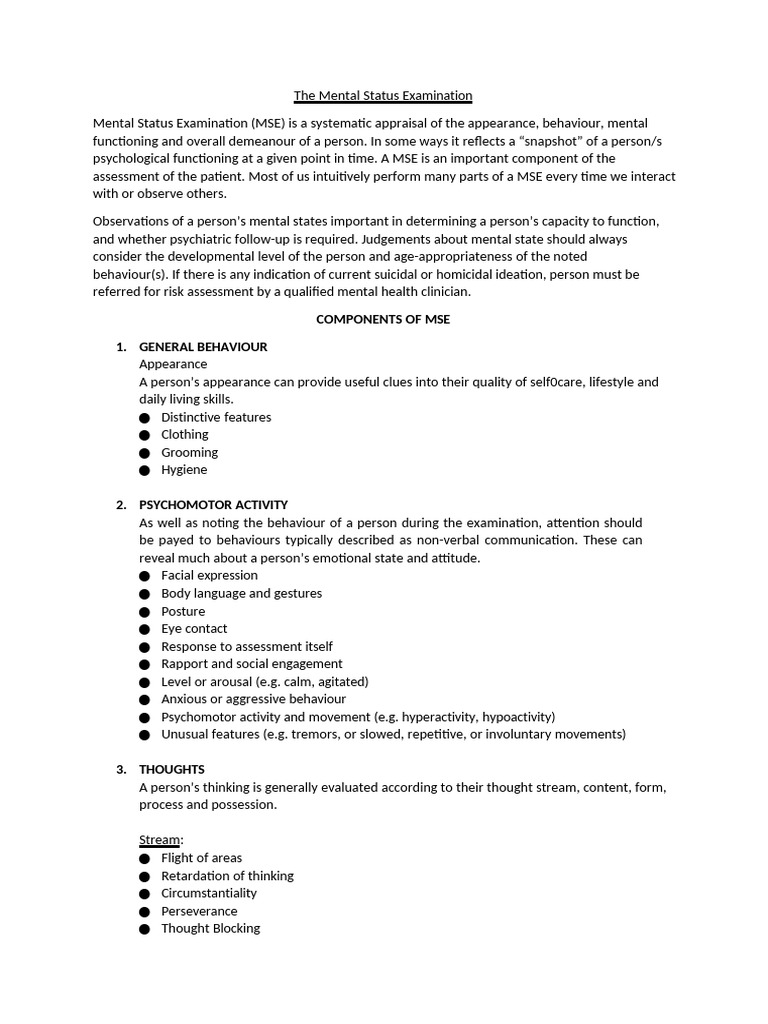 psychological functioning at a given point in time. A MSE is an important component of the
