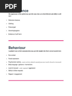 As well as noting the behaviour of a person during the examination, attention should