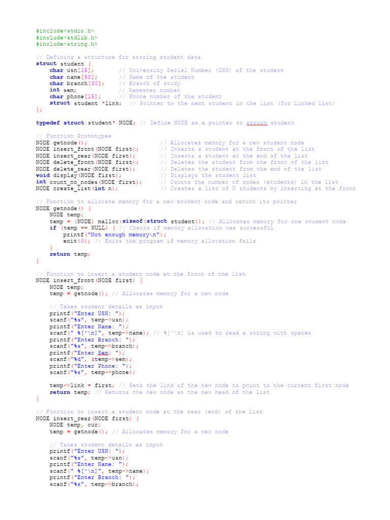 NODE create_list(int n); // Creates a list of N students by inserting at the front