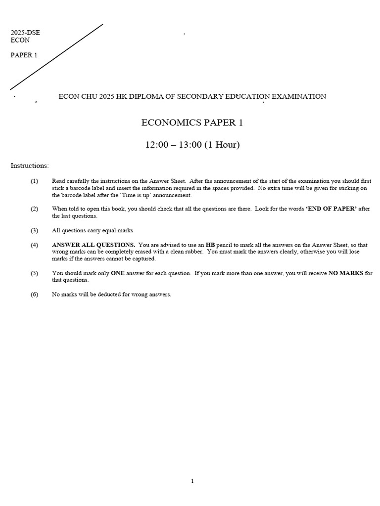 ECON CHU 2025 HK DIPLOMA OF SECONDARY EDUCATION EXAMINATION
