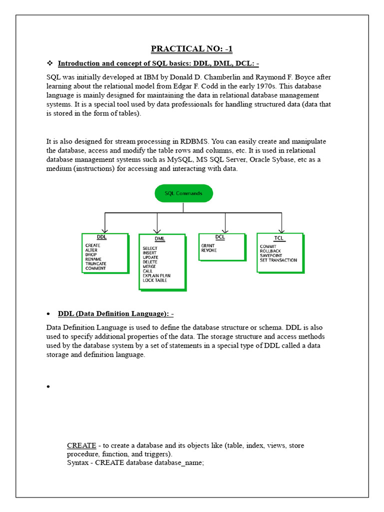 Introduction and concept of SQL basics: DDL, DML, DCL: -