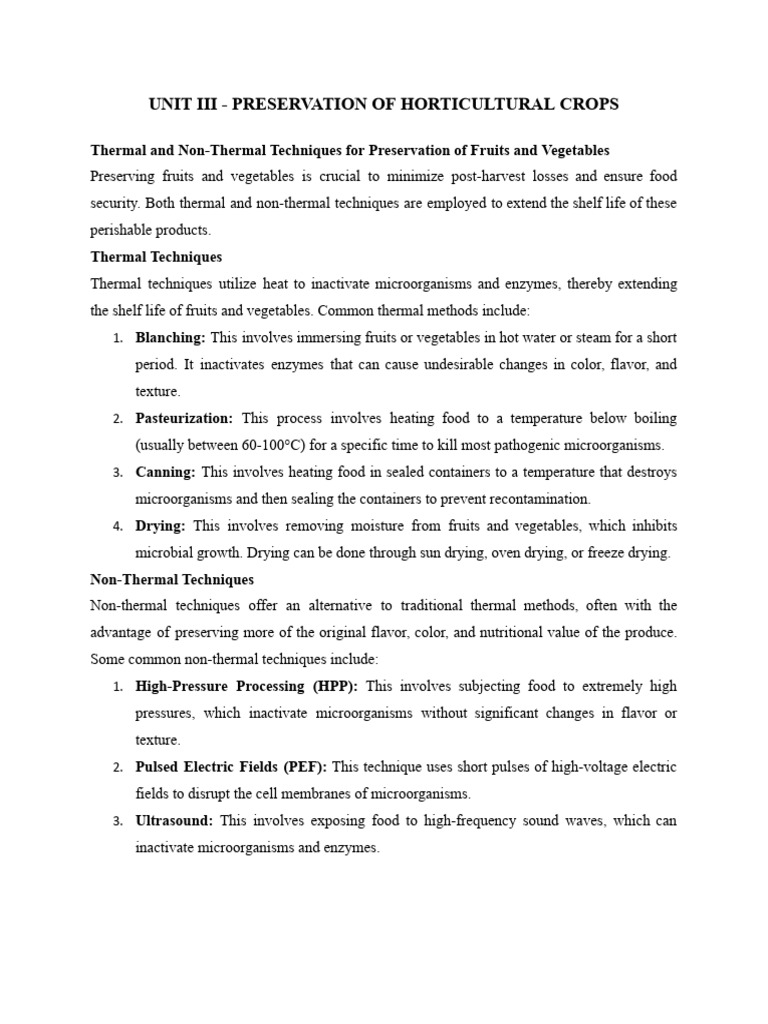 UNIT III - PRESERVATION OF HORTICULTURAL CROPS