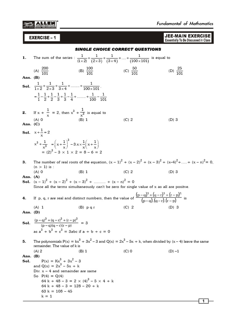 SECTION - 1 : SINGLE CHOICE CORRECT QUESTIONS