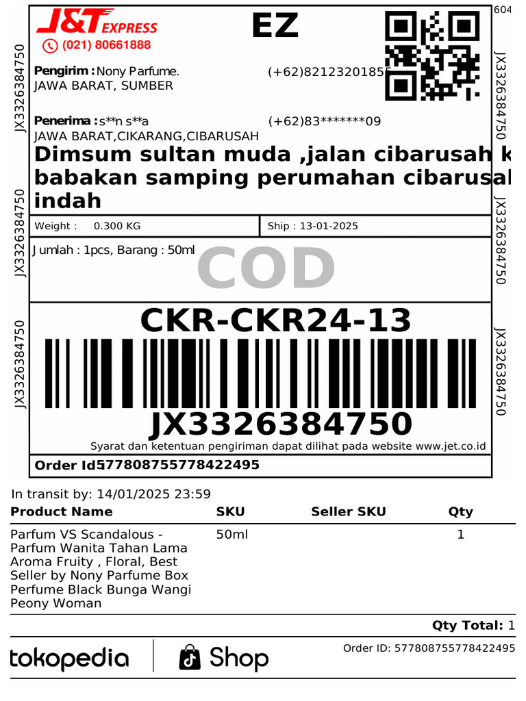 Pengirim : Nony Parfume. (+62)82123201855
