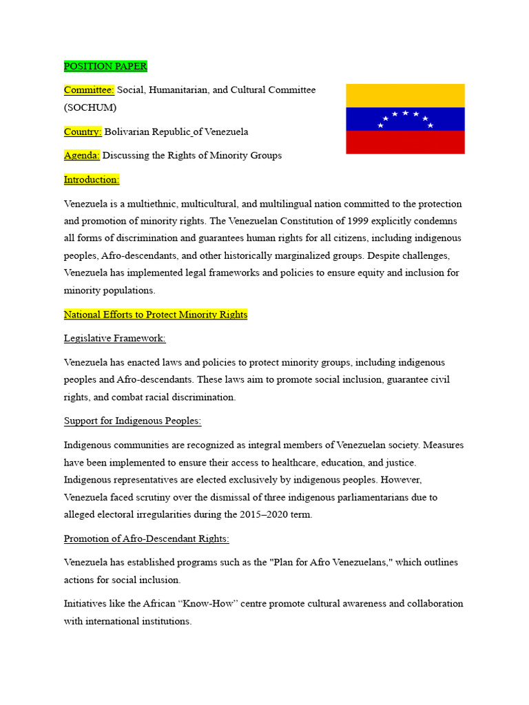 Venezuela has enacted laws and policies to protect minority groups, including indigenous