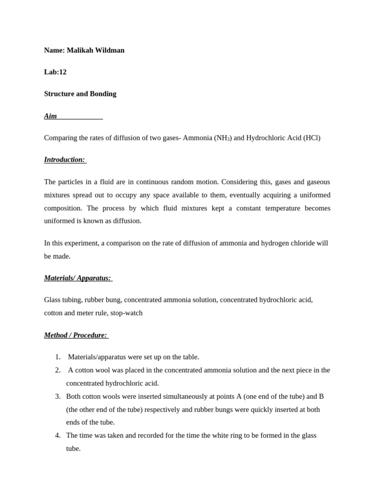 In this experiment, a comparison on the rate of diffusion of ammonia and hydrogen chloride will