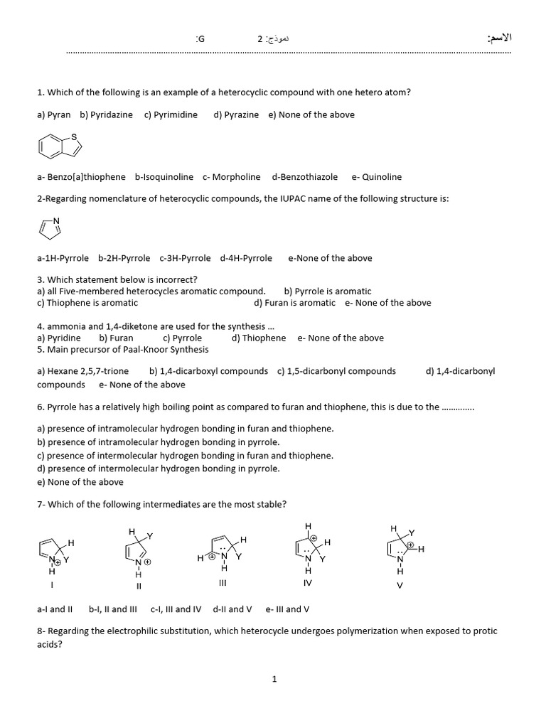 1. Which of the following is an example of a heterocyclic compound with one hetero atom?