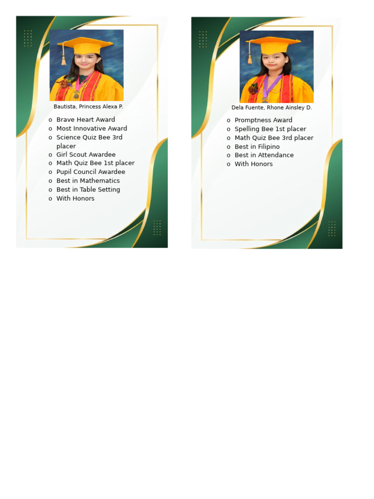 o Math Quiz Bee 2nd o Girl Scout Awardee