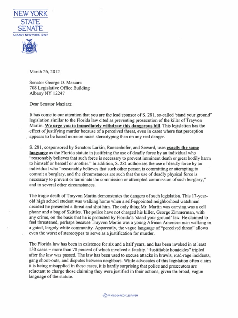 Save 2012-03-26 Letter to Sen Maziarz on S281 For Later
