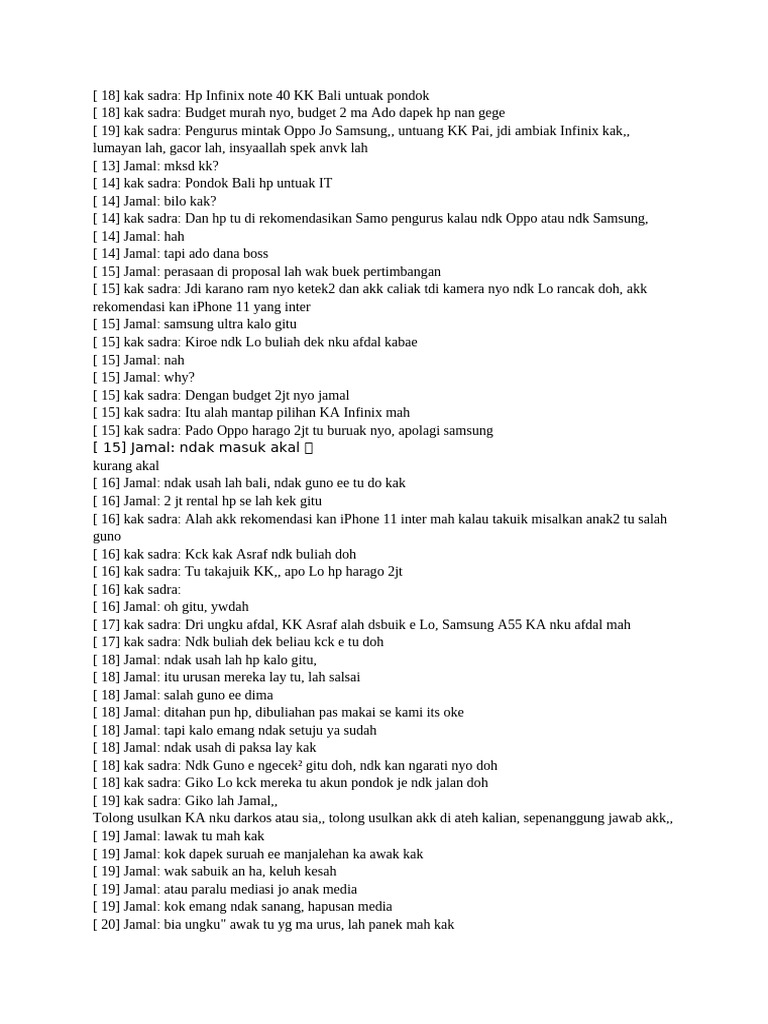 [ 18] Jamal: ndak usah lah hp kalo gitu,