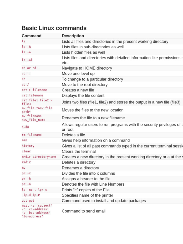 mkdir directoryname Creates a new directory in the present working directory or a at the s