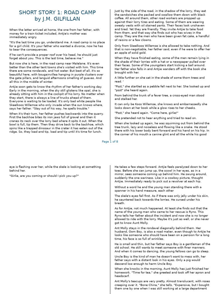 SHORT STORY 1: ROAD CAMP Just by the side of the road, in the shadow of the lorry, they eat