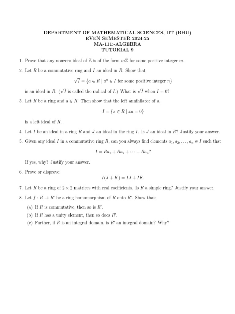 is an ideal in R. ( I is called the radical of I.) What is I when I = 0?