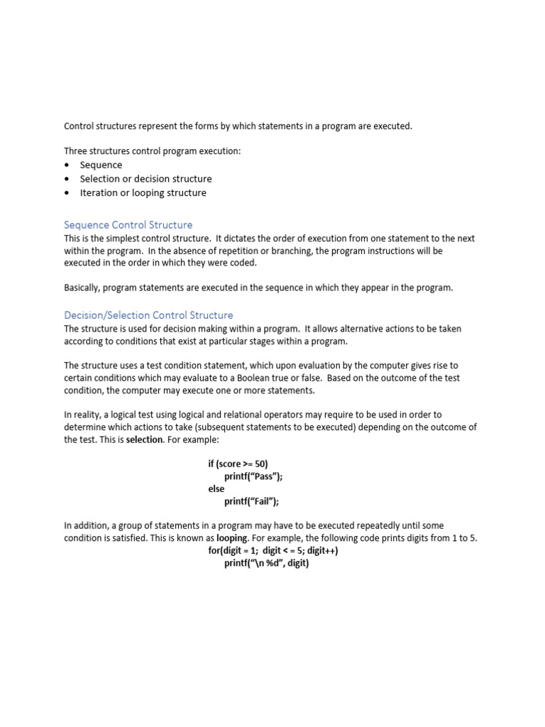 Control structures represent the forms by which statements in a program are executed.