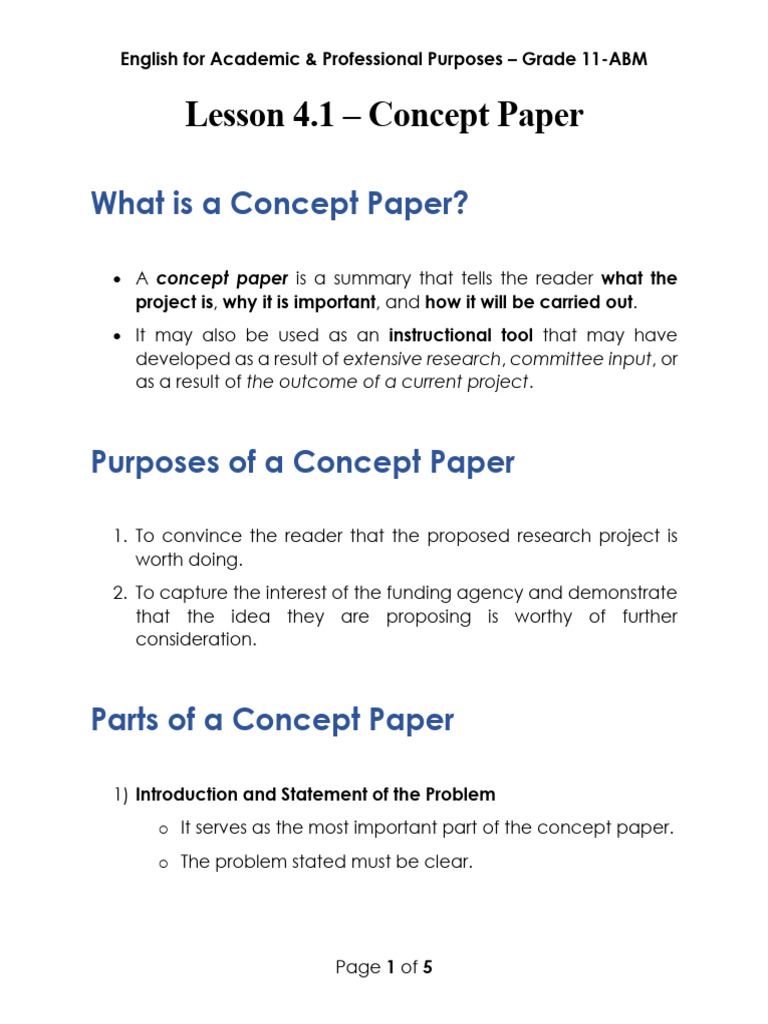 • Be brief, concise, and clear. Ideally, concept papers should not