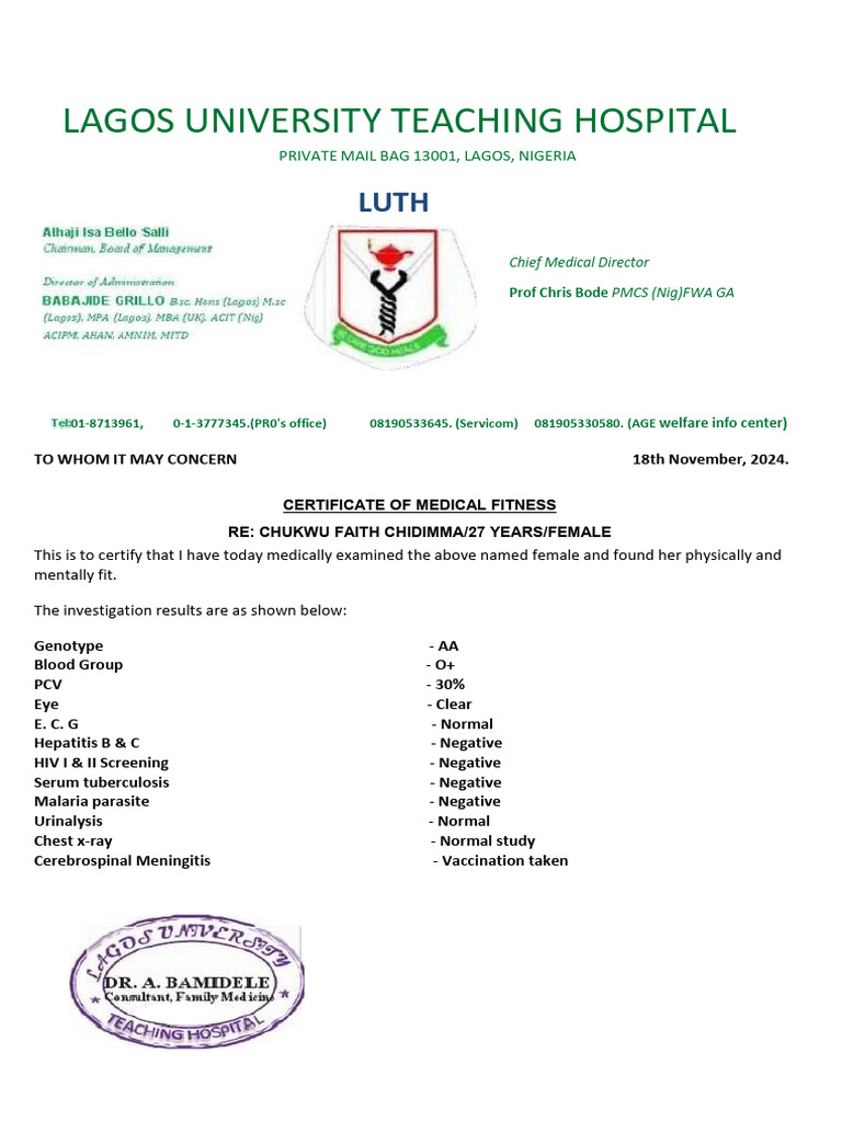 CERTIFICATE OF MEDICAL FITNESS