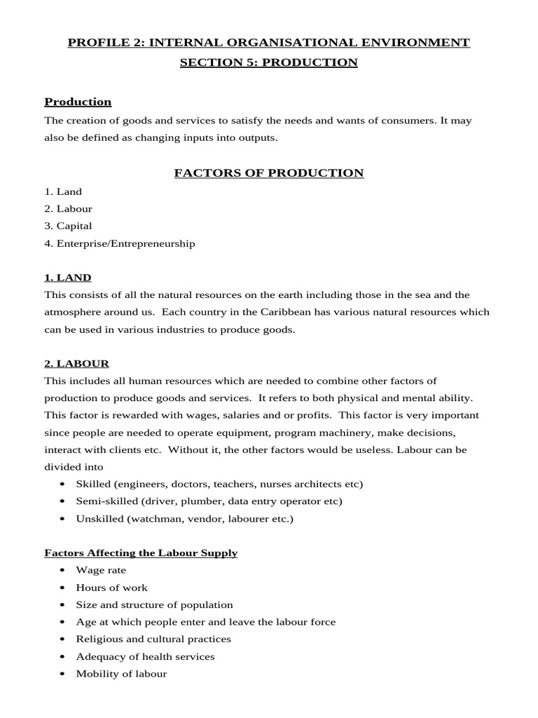 interact with clients etc. Without it, the other factors would be useless. Labour can be