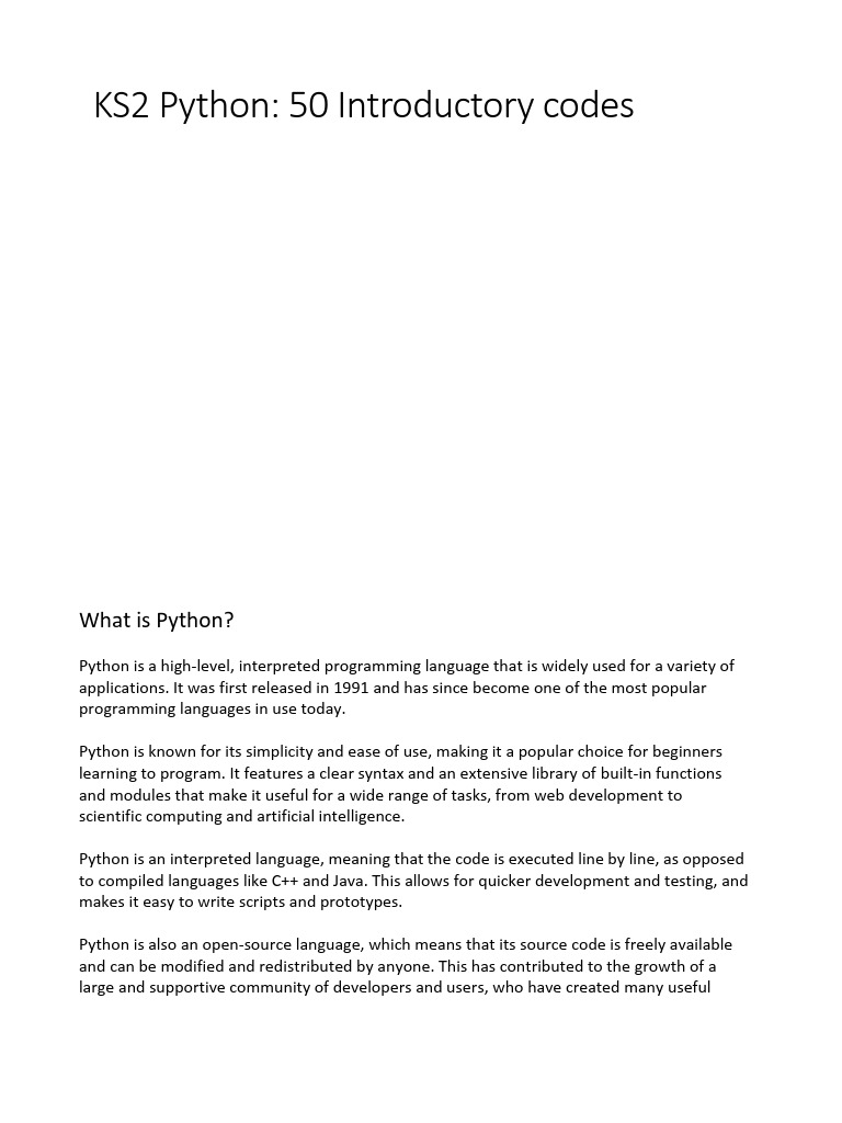 KS2 Python: 50 Introductory codes