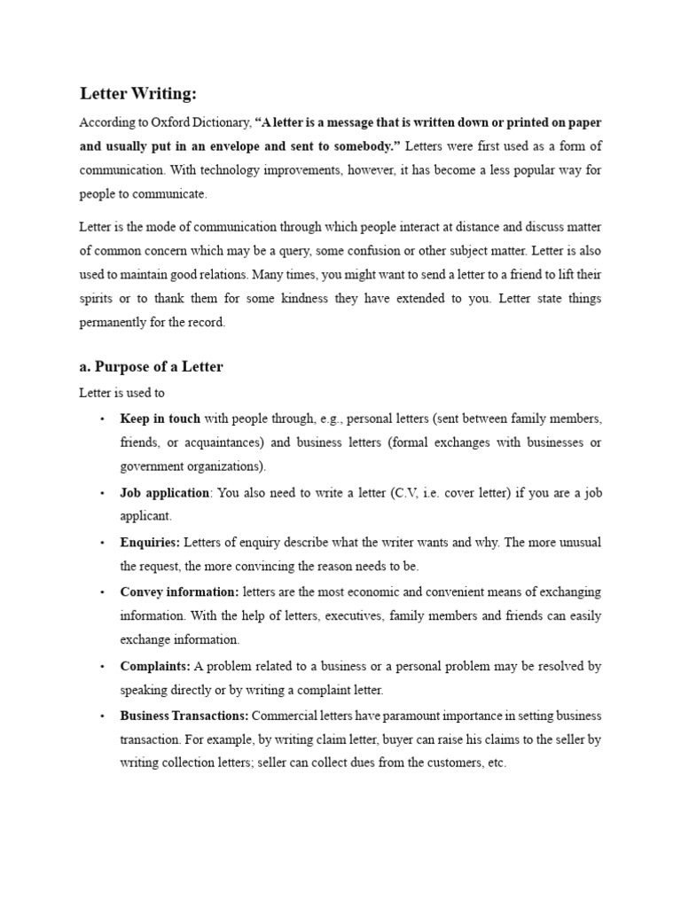 Letter is the mode of communication through which people interact at distance and discuss matter
