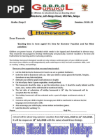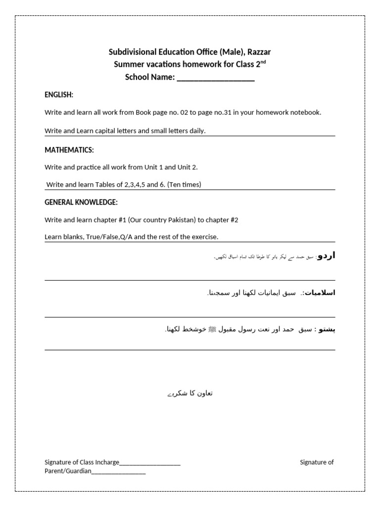 Summer vacations homework for Class 2nd