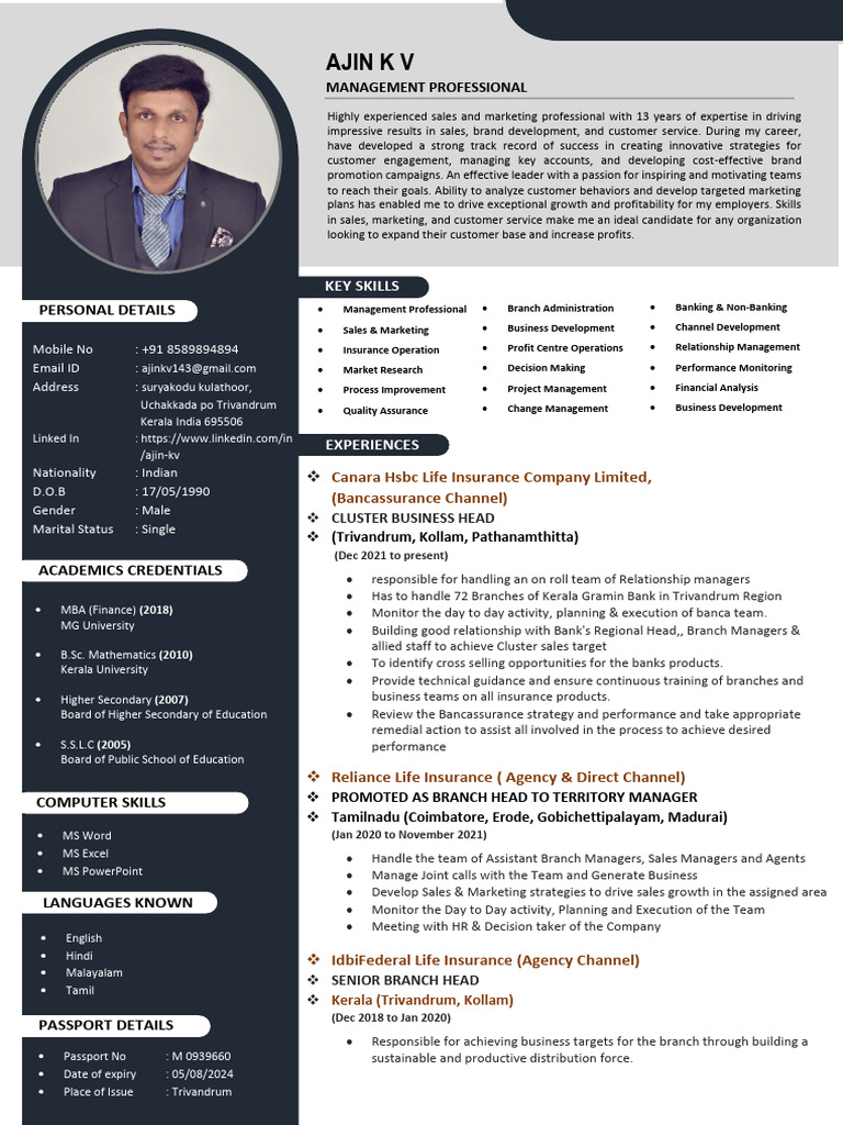 Mobile No : +91 8589894894 Insurance Operation Profit Centre Operations Relationship Management