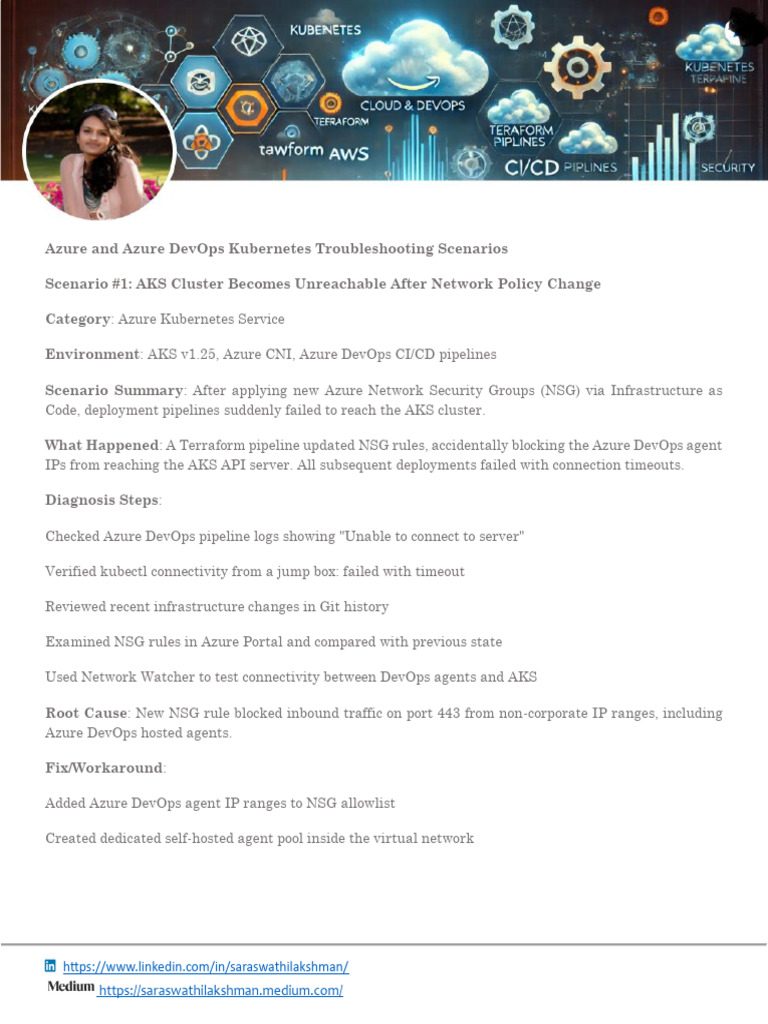 What Happened: A Terraform pipeline updated NSG rules, accidentally blocking the Azure DevOps agent