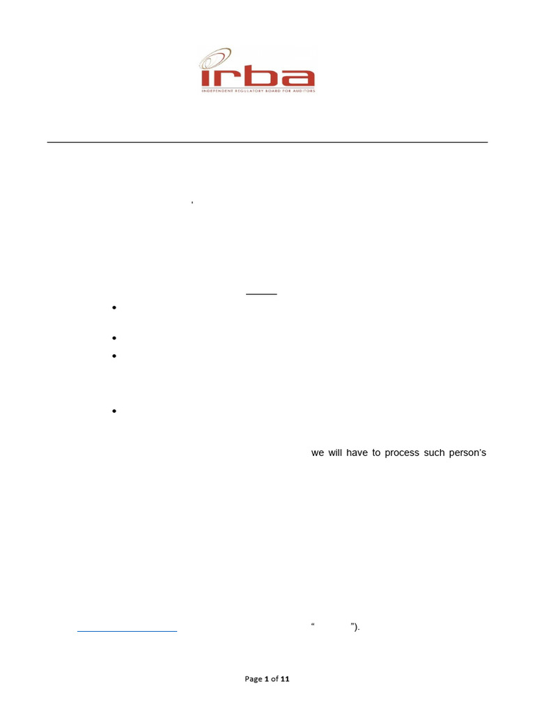 (https://www.irba.co.za) (hereinafter referred to as the “website”).