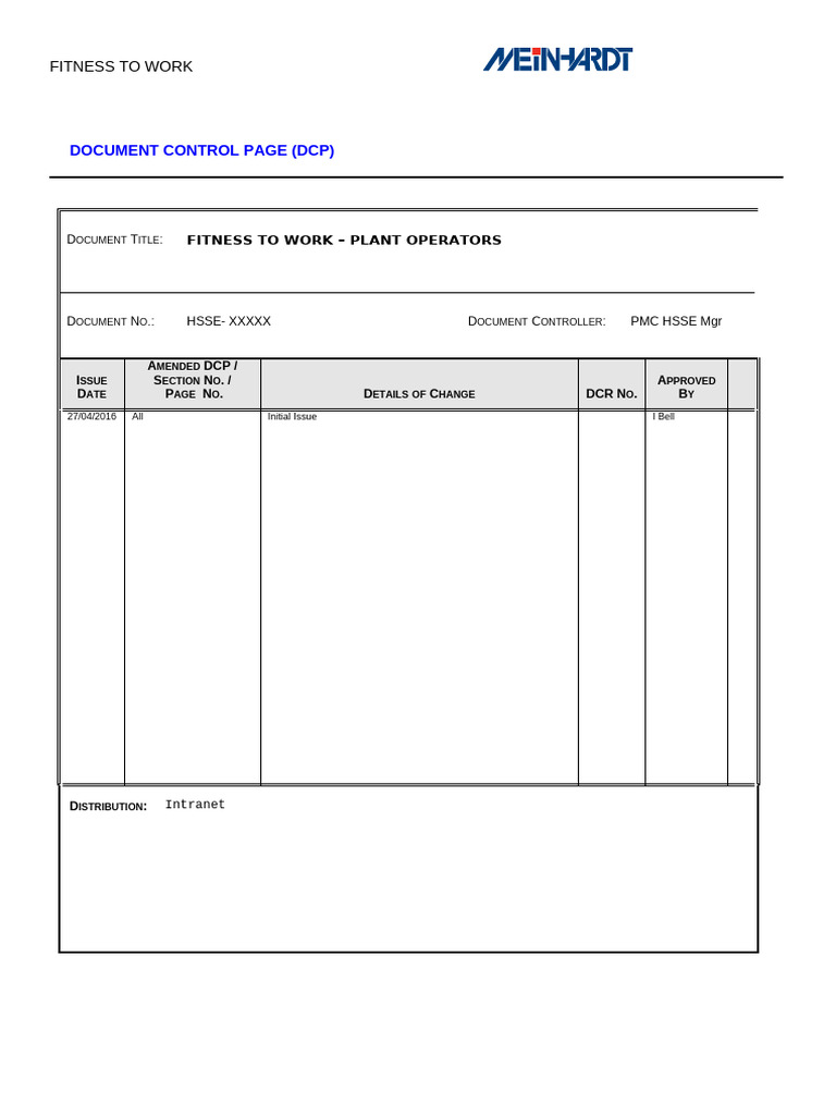 DOCUMENT CONTROL PAGE (DCP)