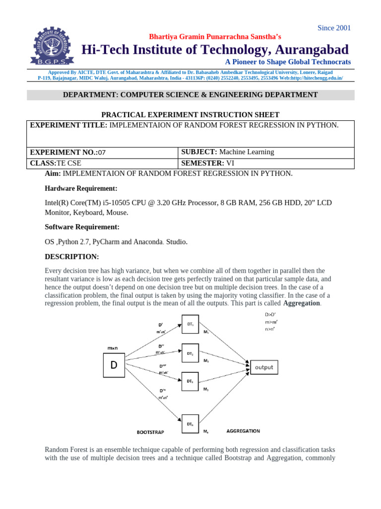EXPERIMENT TITLE: IMPLEMENTAION OF RANDOM FOREST REGRESSION IN PYTHON.